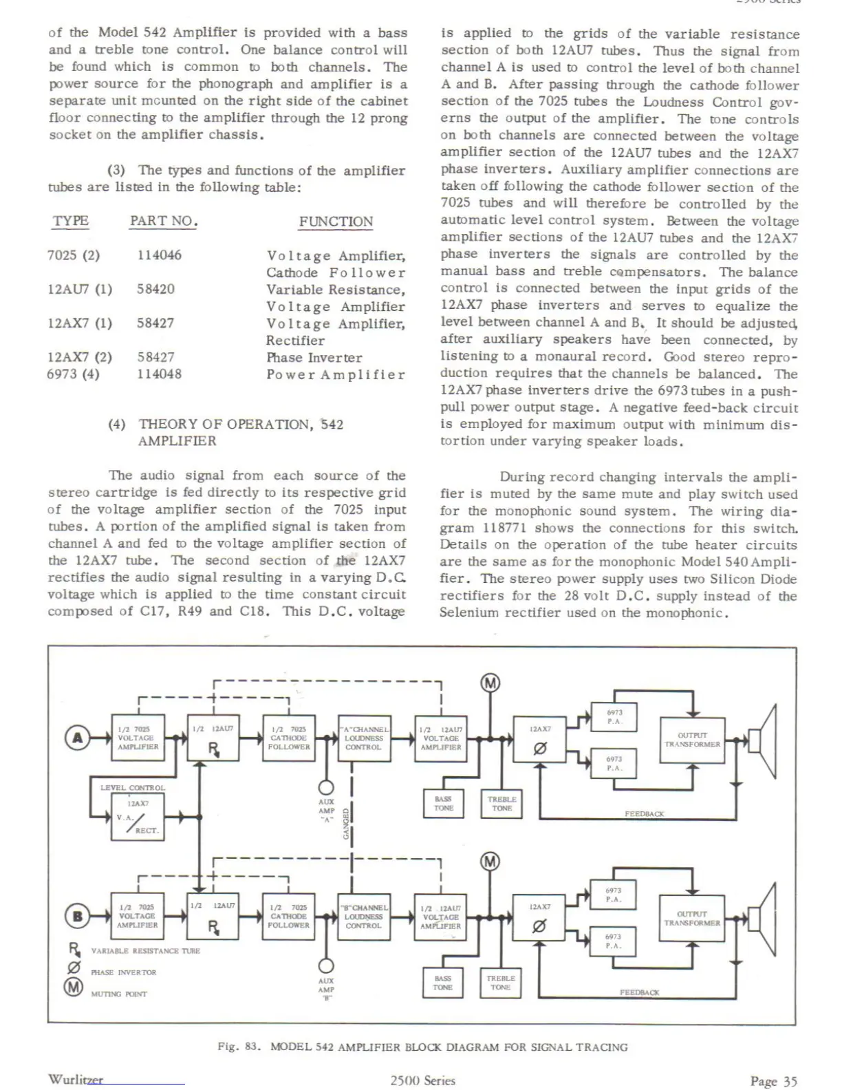 Wurlitzer 2500 - MODEL 542 AMPLIFIER BLOCK DIAGRAM