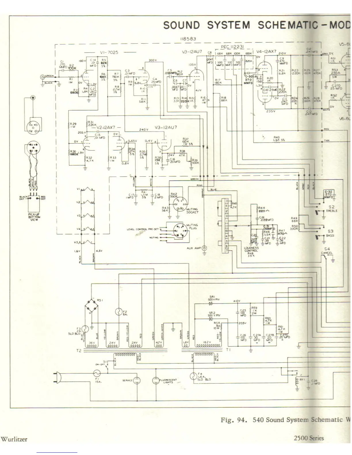 Wurlitzer 2500 - SOUND SYSTEM SCHEMATIC - MODEL 540 AMPLIFIER