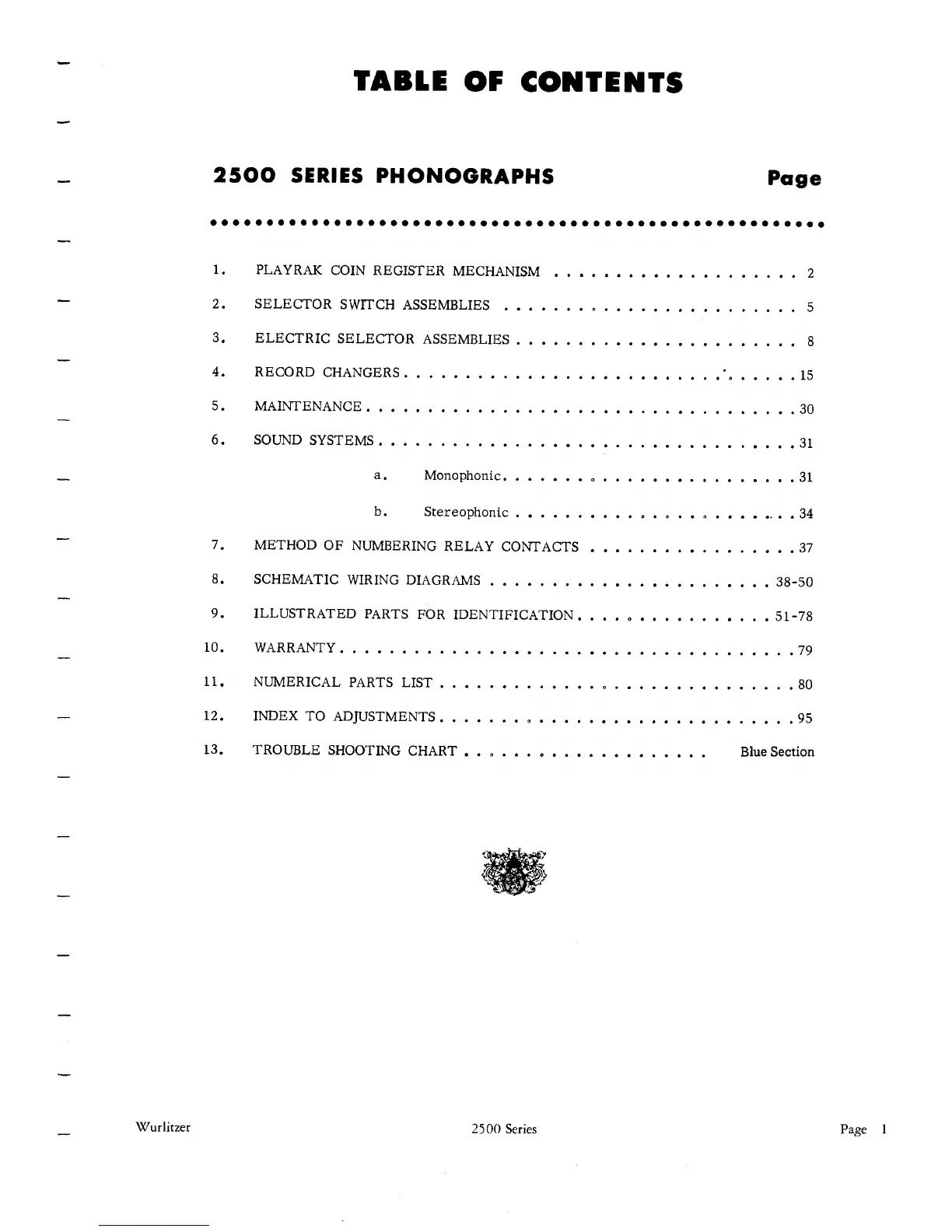Wurlitzer 2500 - Table of Contents