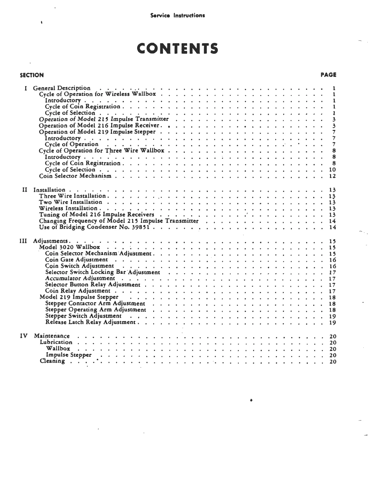 Wurlitzer 3020 - Table of Contents
