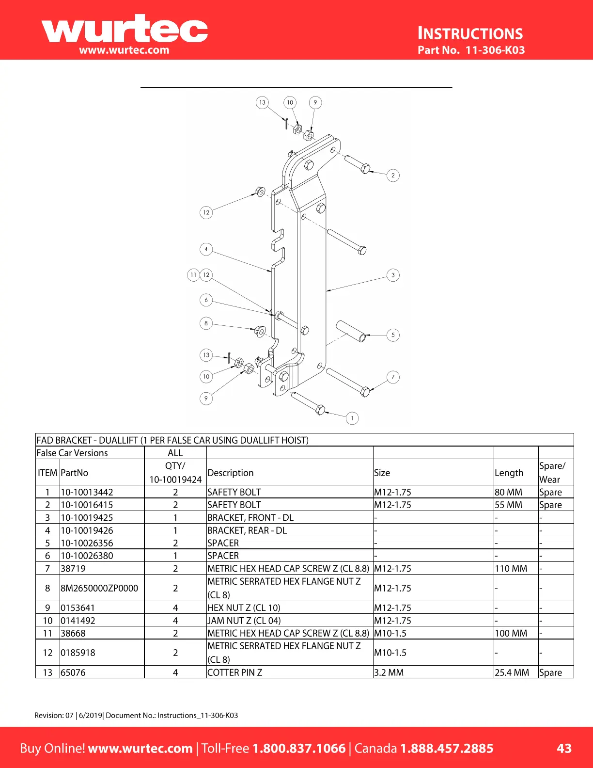 FALL ARREST DEVICE BRACKET - DUALLIFT