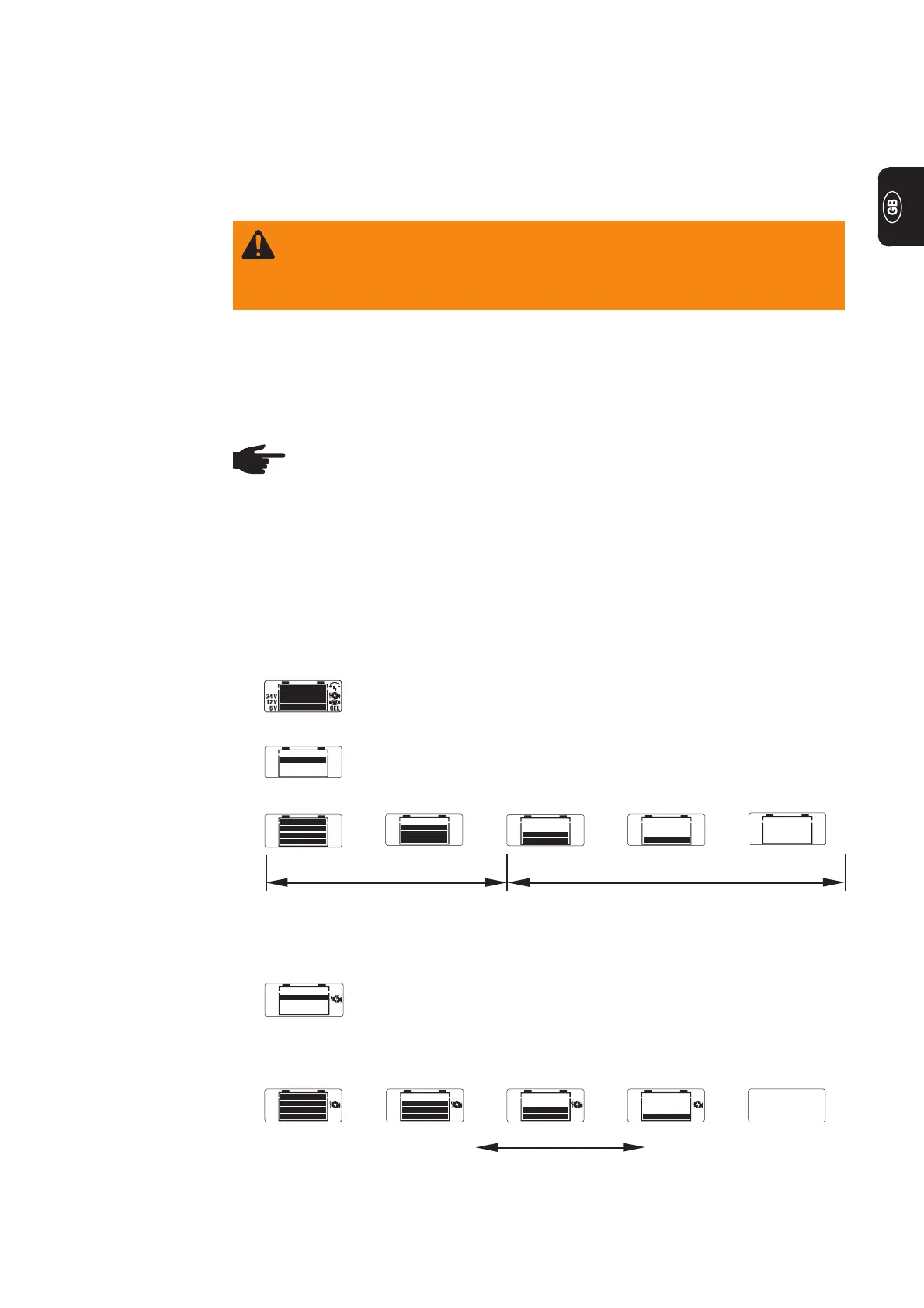 the respective voltage(s) and/or symbol for the type of battery are displayed.