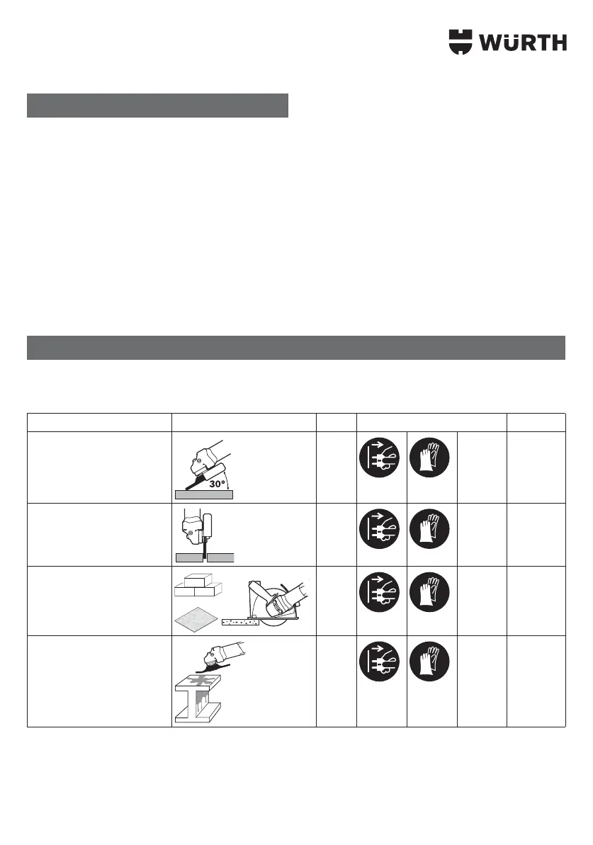 Le tableau ci-après indique les modes opératoires pour le montage et l’utilisation de l’outil électroportatif. Les instructions spé-