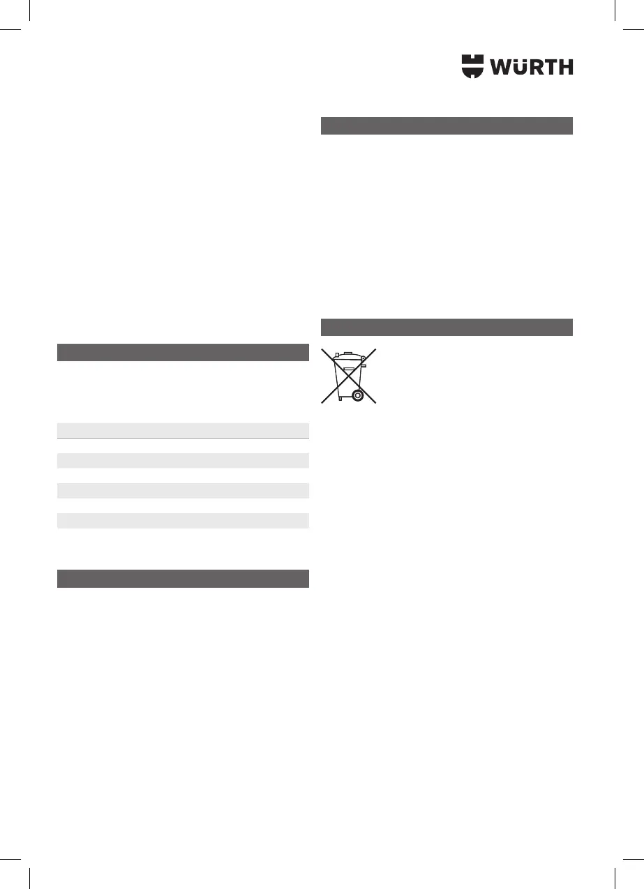 Na urządzenie rmy Würth udzielamy rękojmi zgod-