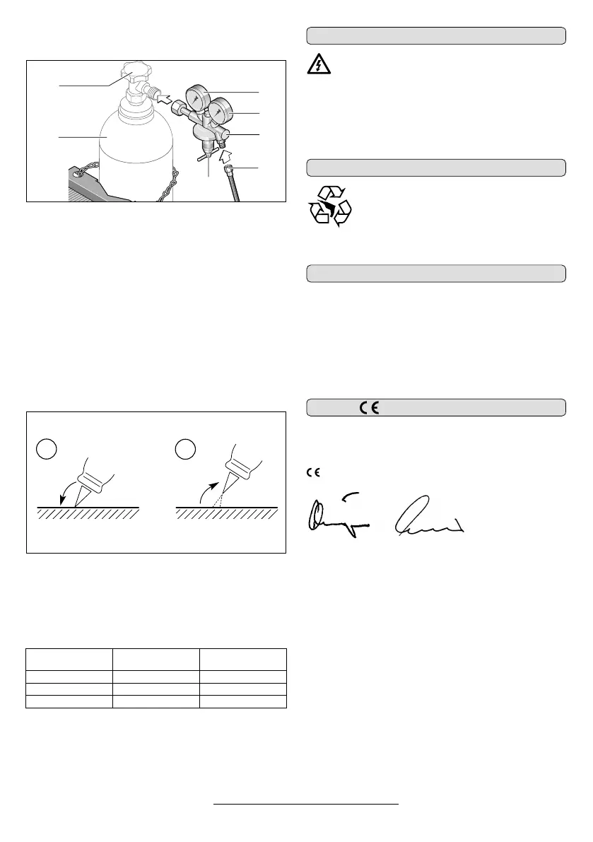 duceerventiel in (zie de tabel Richtwaarden voor stroomsterkten en gas-