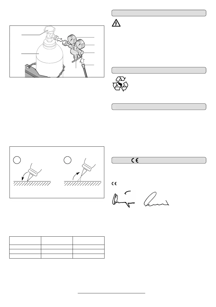derers ein (siehe Tabelle Richtwerte für Stromstärken und Gasmenge).