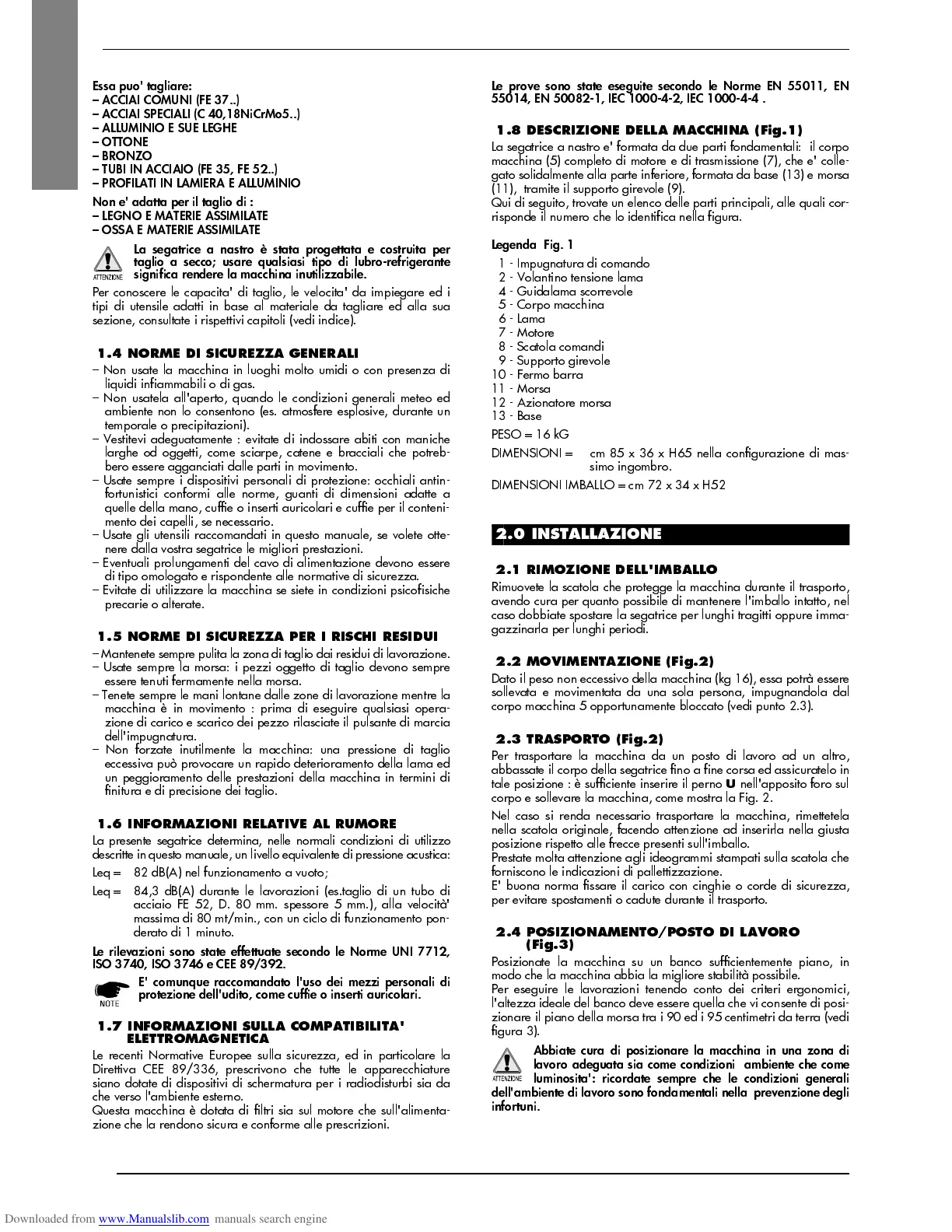 Ò .ON FORZATE INUTILMENTE LA MACCHINA UNA PRESSIONE DI TAGLIO