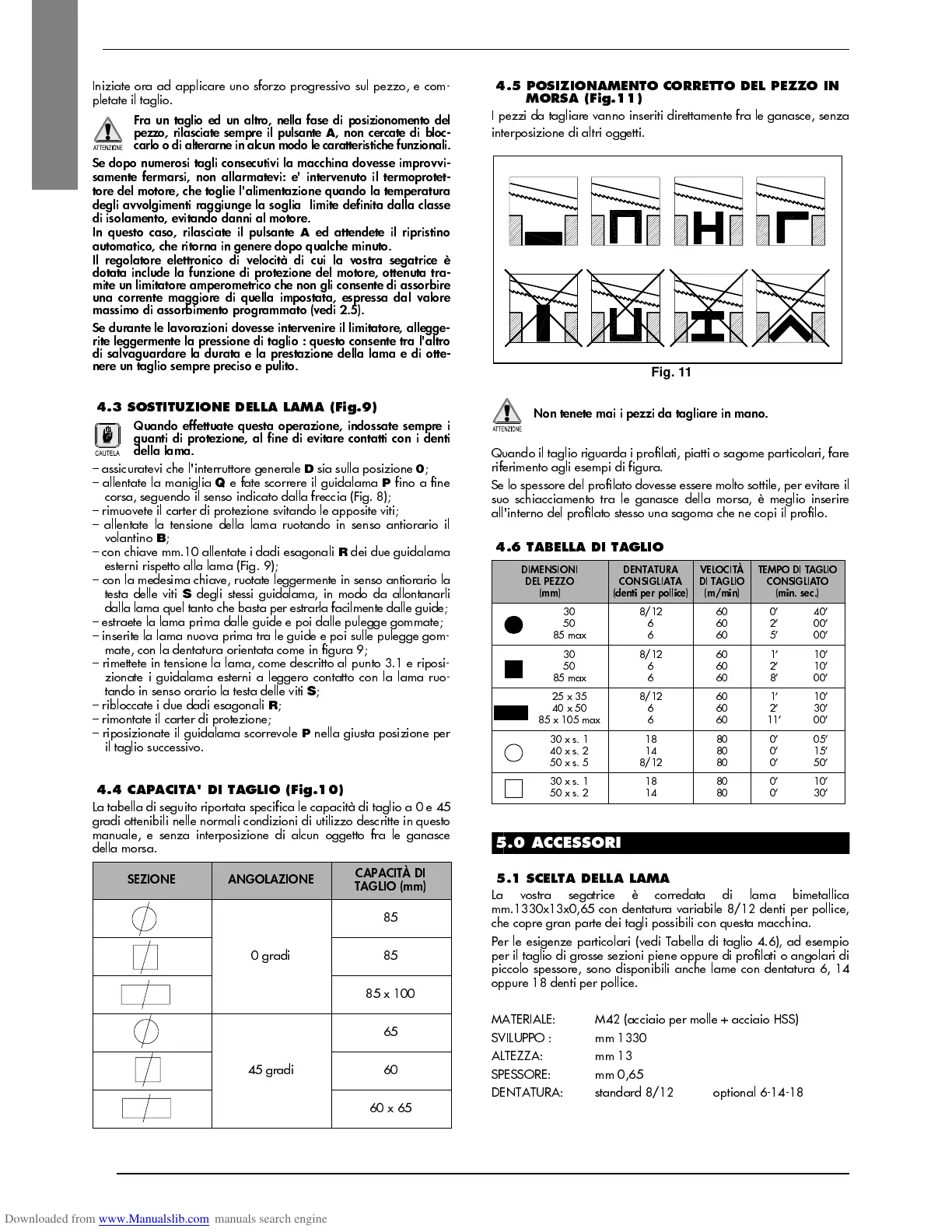 Ò ALLENTATE LA TENSIONE DELLA LAMA RUOTANDO IN SENSO ANTIORARIO IL