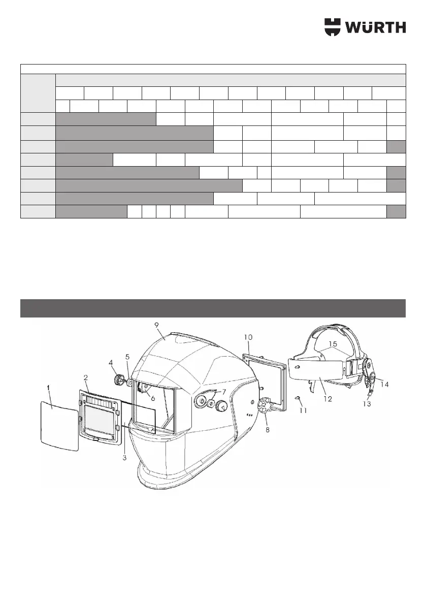 Таблица 1. Степень затемнения