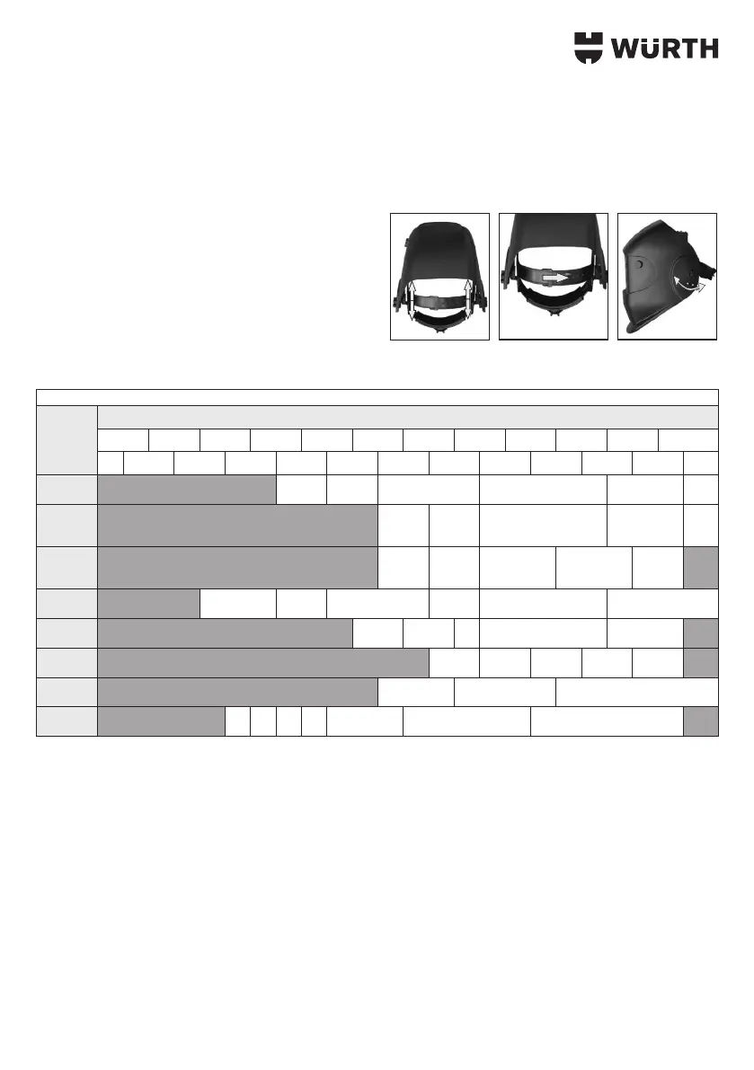 Tabela za podešavanje stepena zatamnjenja