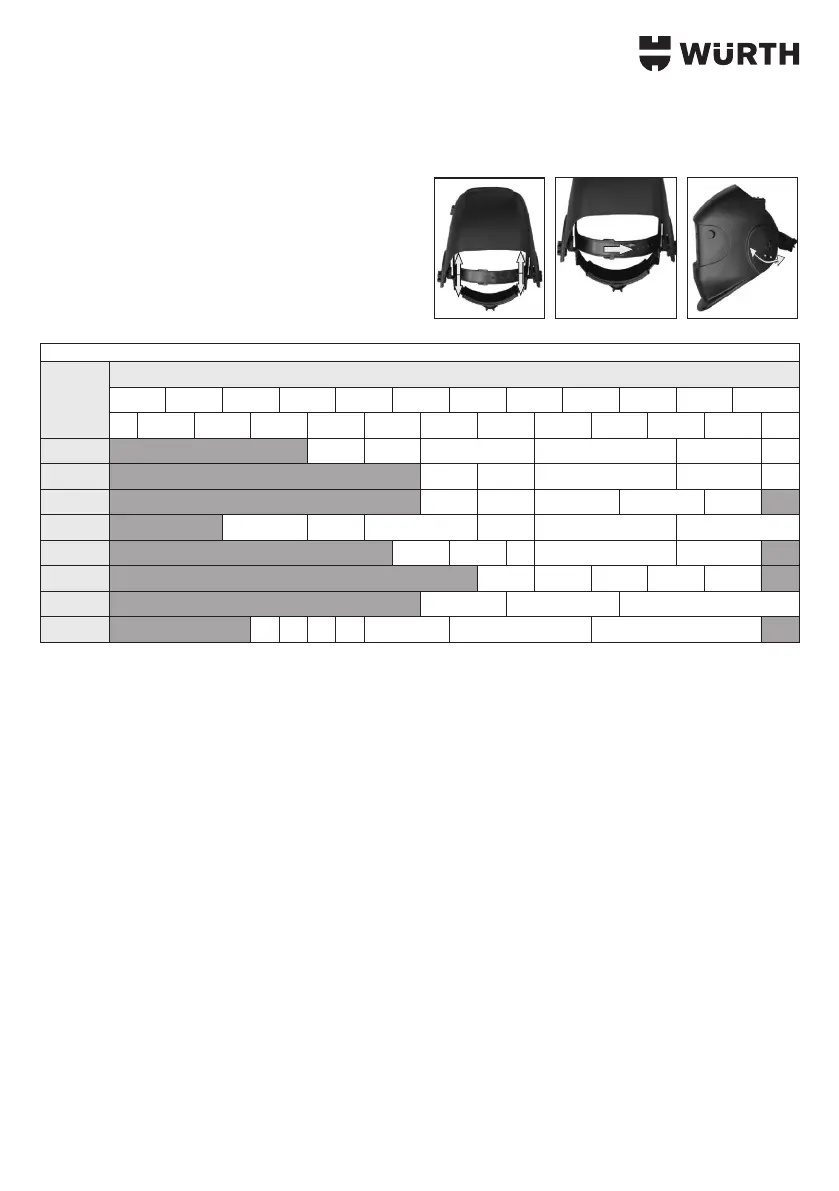 Tabela n. 1 dos graus de escurecimento