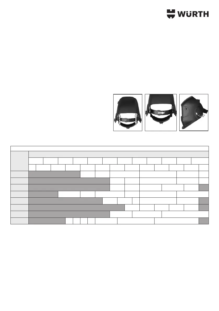 1. sz. táblázat: Útmutató a sötétítési fokozatokhoz