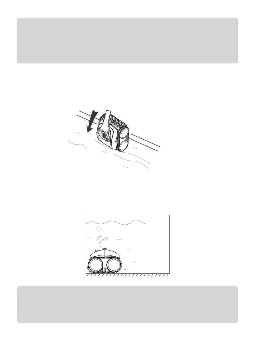 Tenez la poignée du nettoyeur et mettez-le dans la piscine dans les 3 minutes, sinon