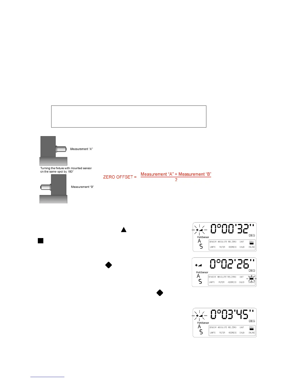 a) ZERO ABSOLUTE / The instrument shows "0" when the angle of the mounting surface is exactly