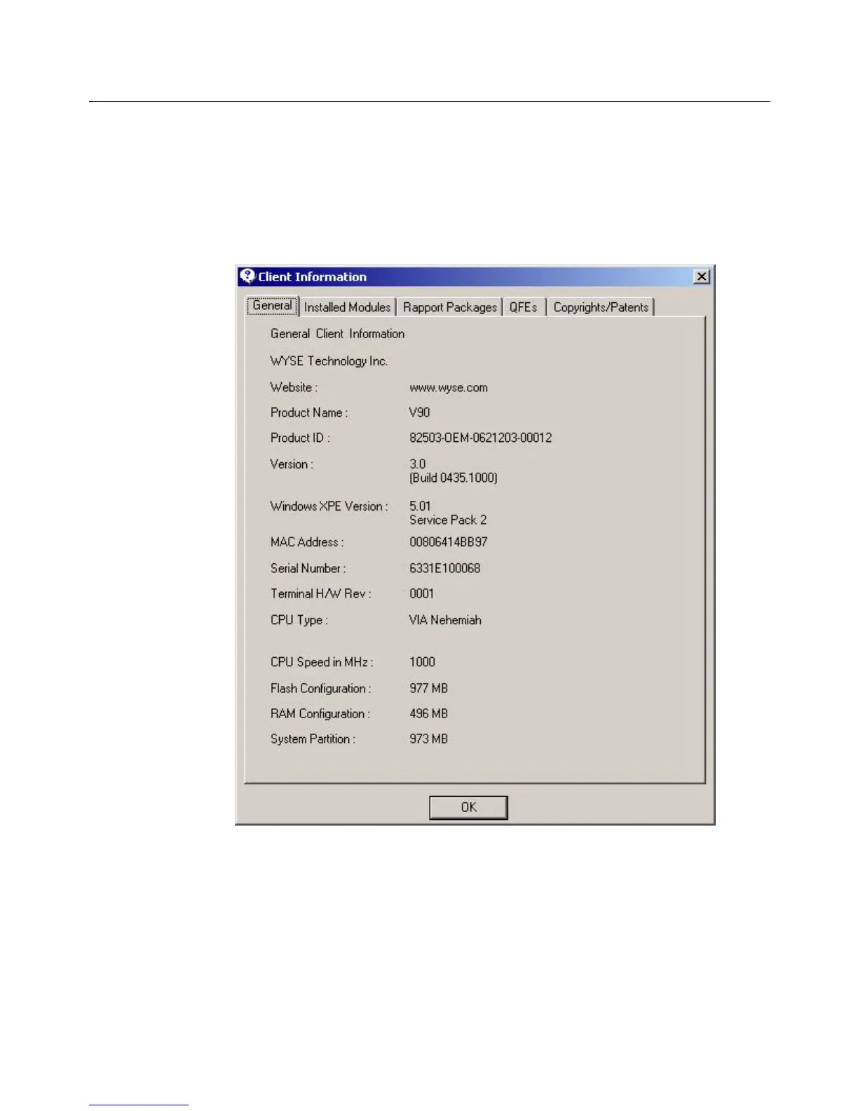 2. From the desktop, click Start | About to open the Client Information window.