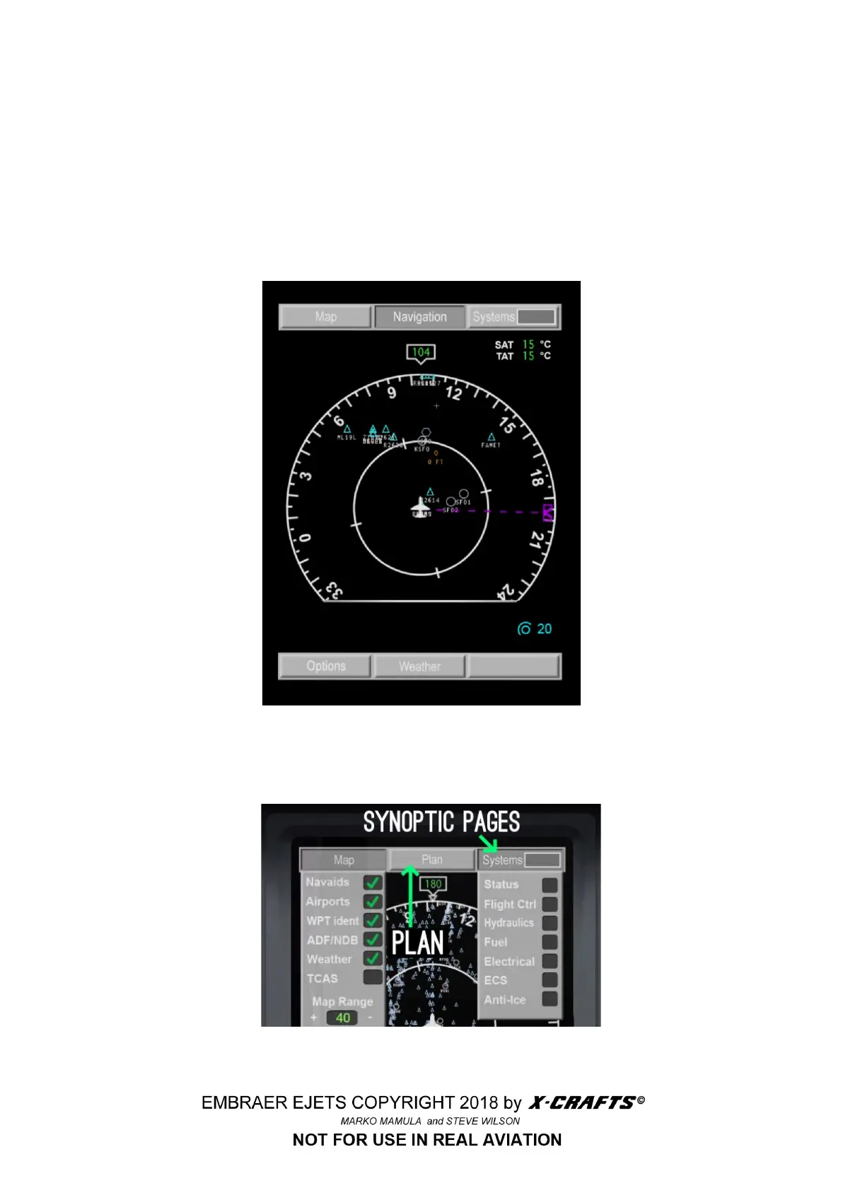 The MFD presents MAP and PLAN navigation formats and various systems synoptic formats