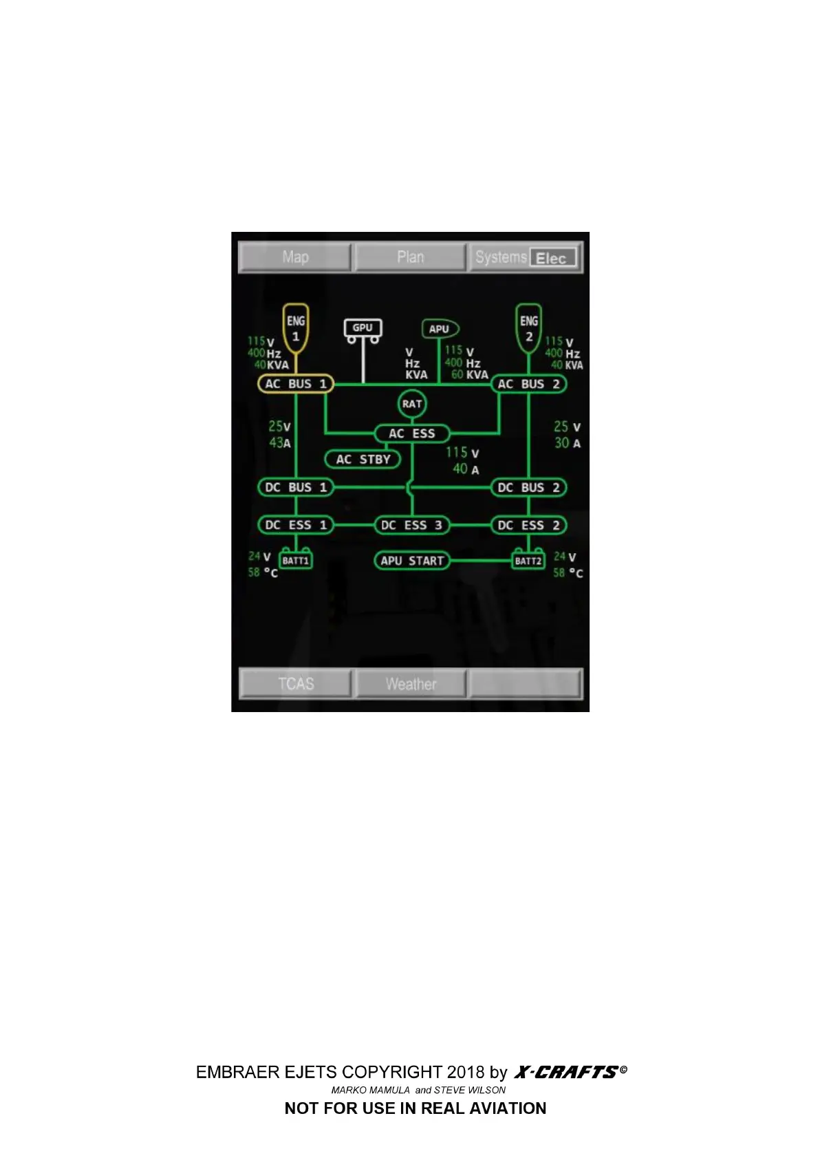 ● Green lines and green crosses mean the system is connected or active on busses and TRUs.