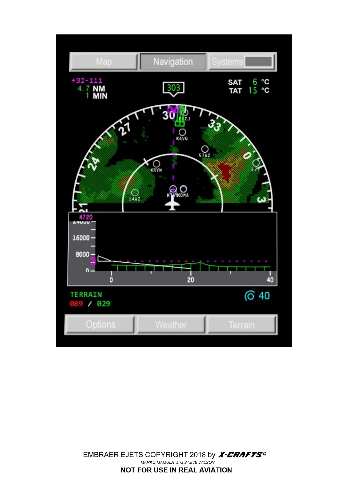 The terrain is only displayed in the two quadrants in front of the aircraft.