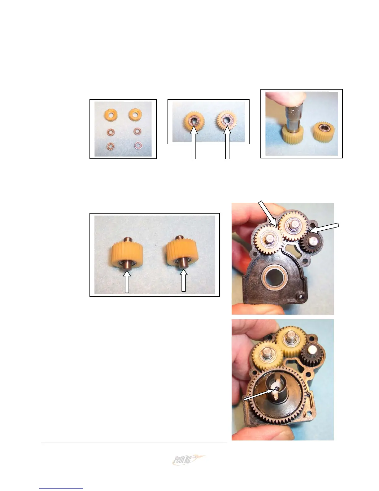 Bag A (left photo) Install two bearings in each idler gear, one from each side.