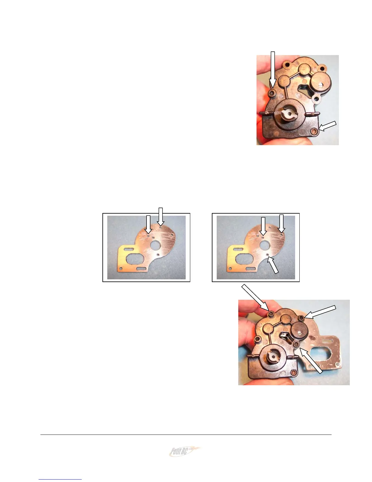 for the motor (left photo). The arrows in the right photo point to the three holes