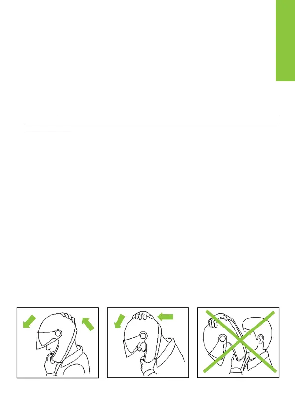 - el casco no tiene que girar, ni moverse sobre la cabeza o descalzarse. De lo contrario