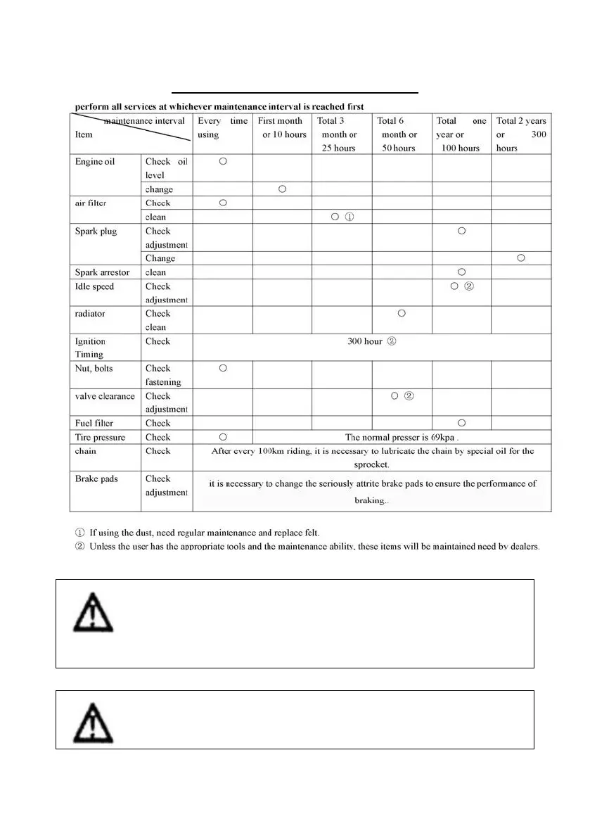 X-PRO Y-6 - Periodic Maintenance Chart