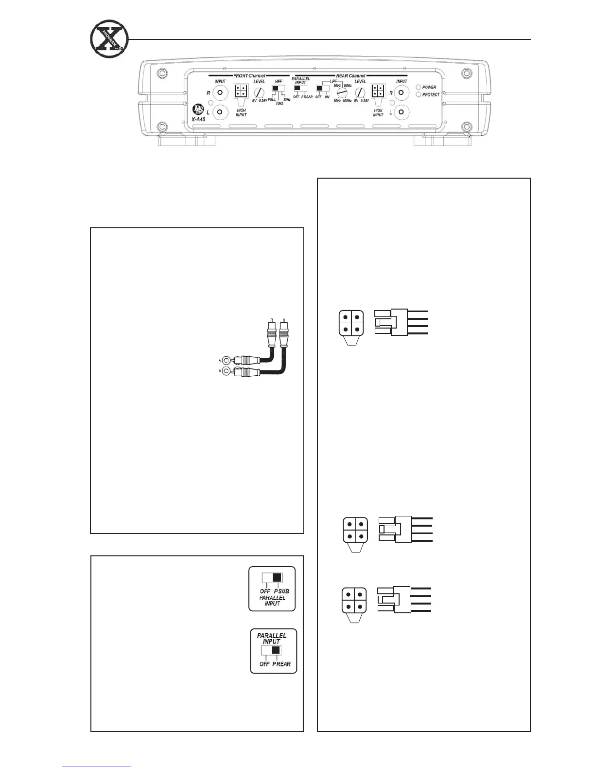 X-A40 has dual inputs Front R / L & Rear R / L.