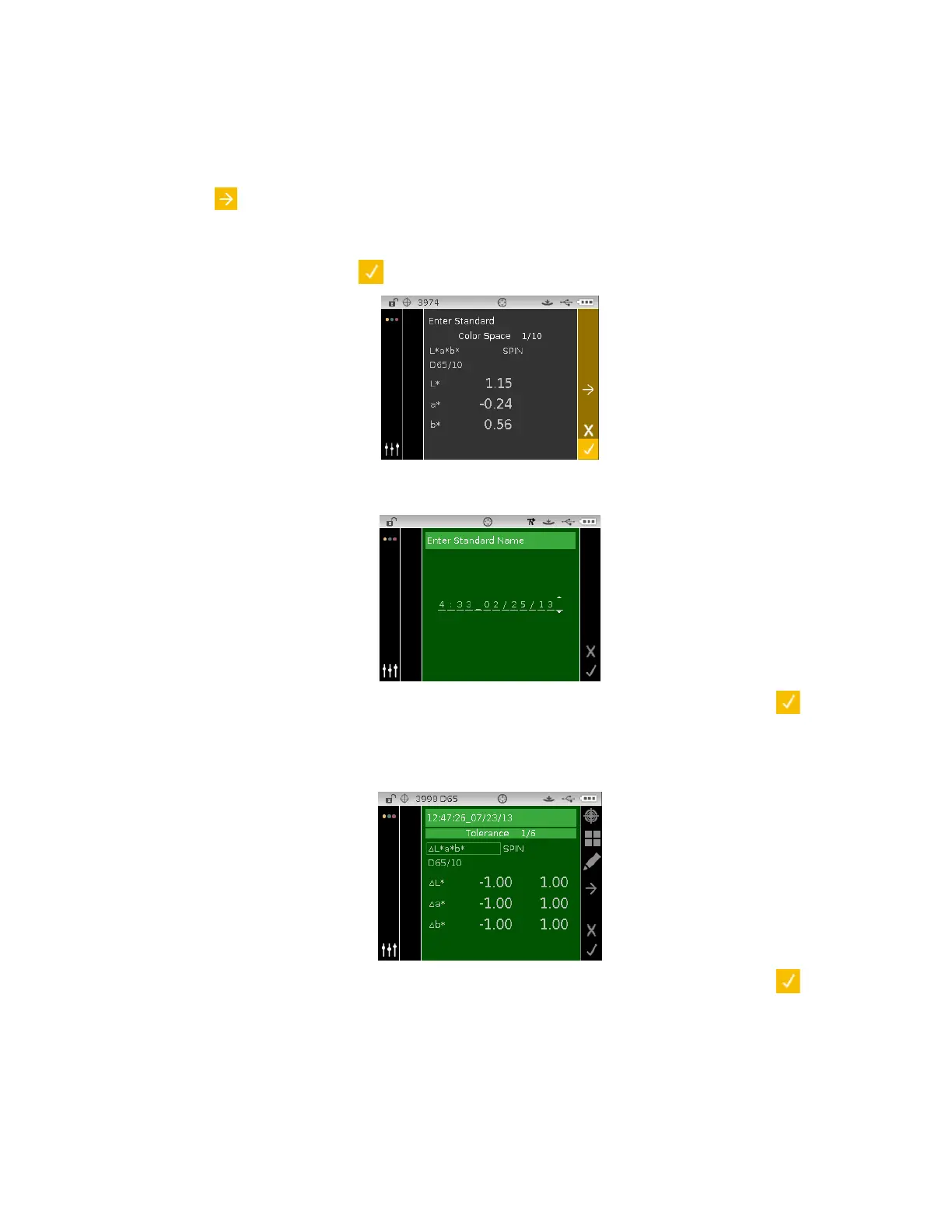 11. When finished with color space entries for the standard, tap the Right navigation button and
