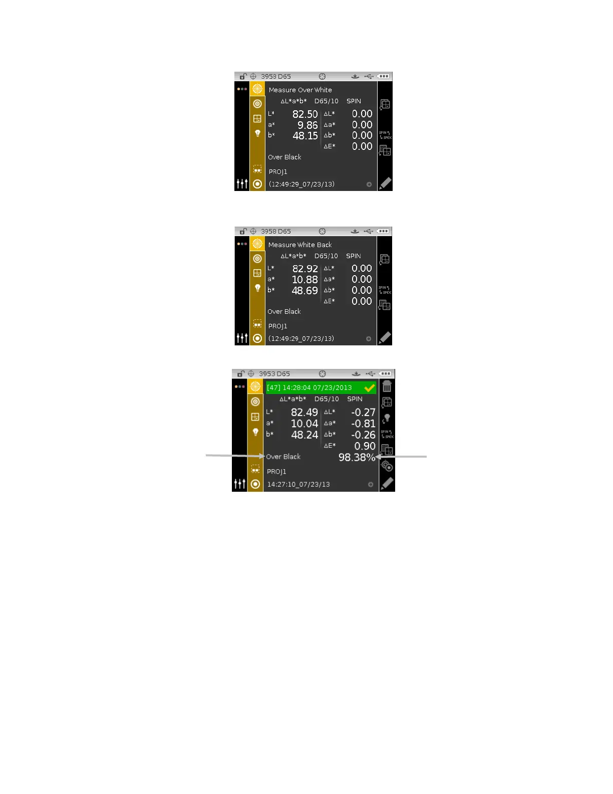 7. Measure the white backing of the opacity card. Release the instrument after data is displayed.