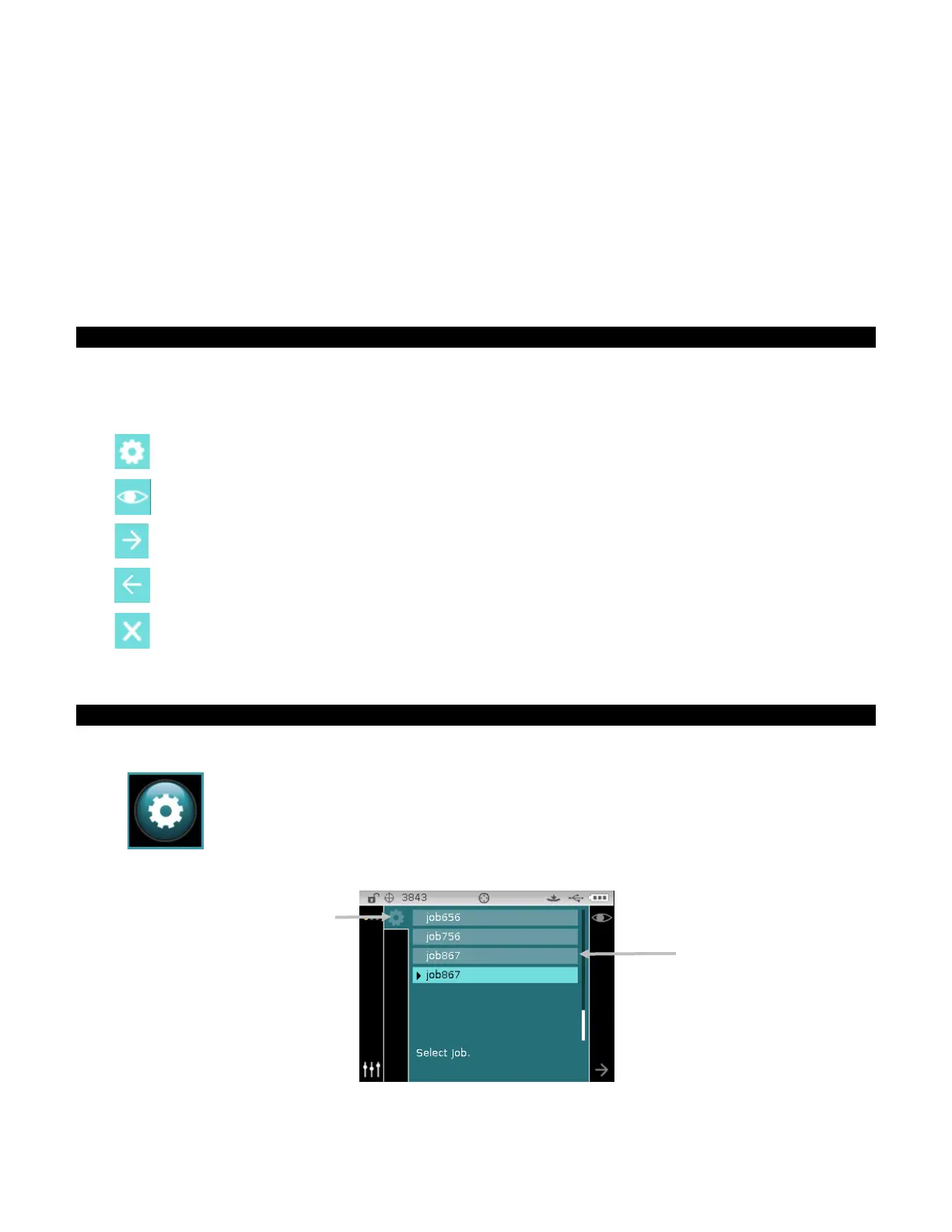 A description of the various icons found in the job mode is shown below.