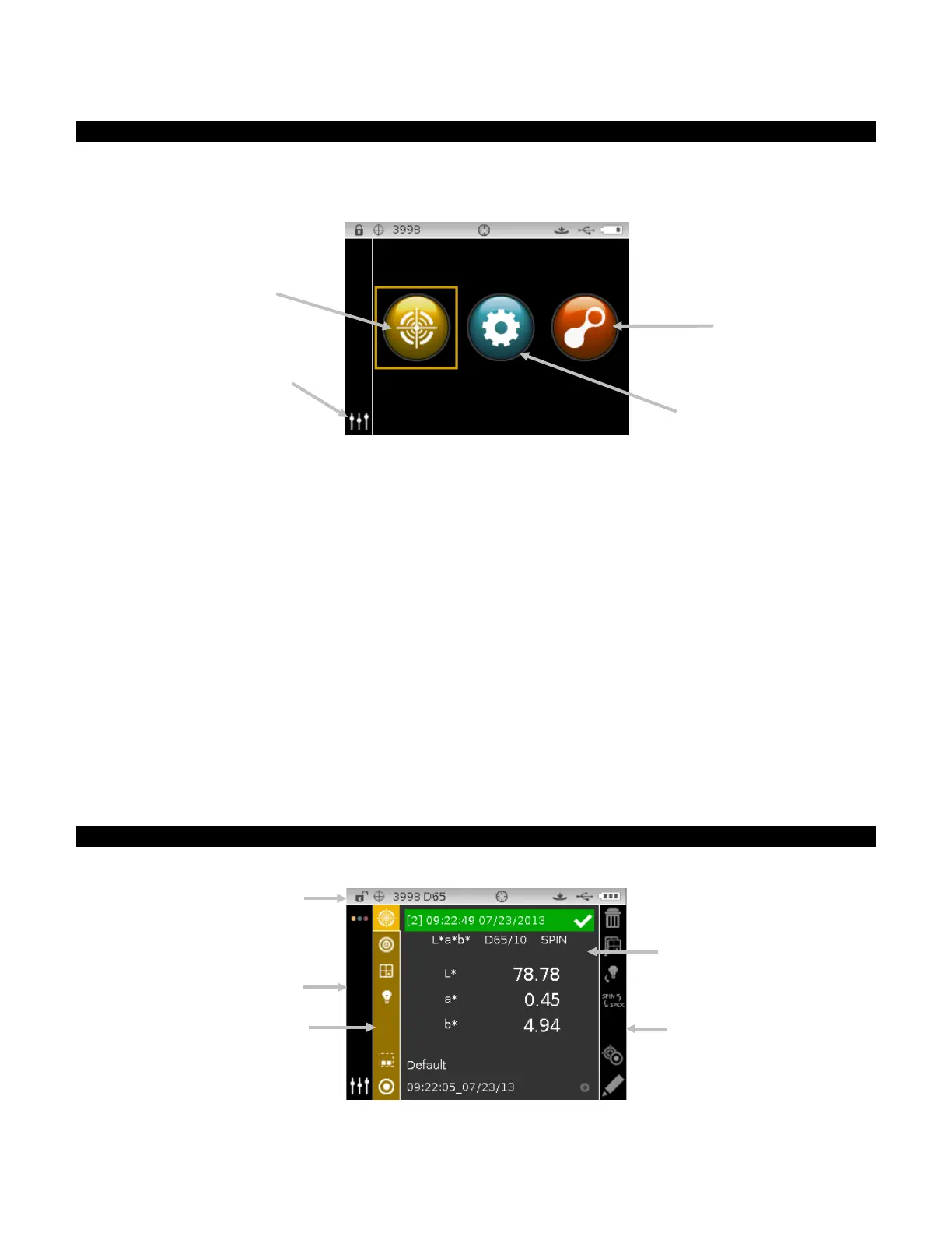 When the instrument is powered-up, the main (top level) screen appears after the diagnostics