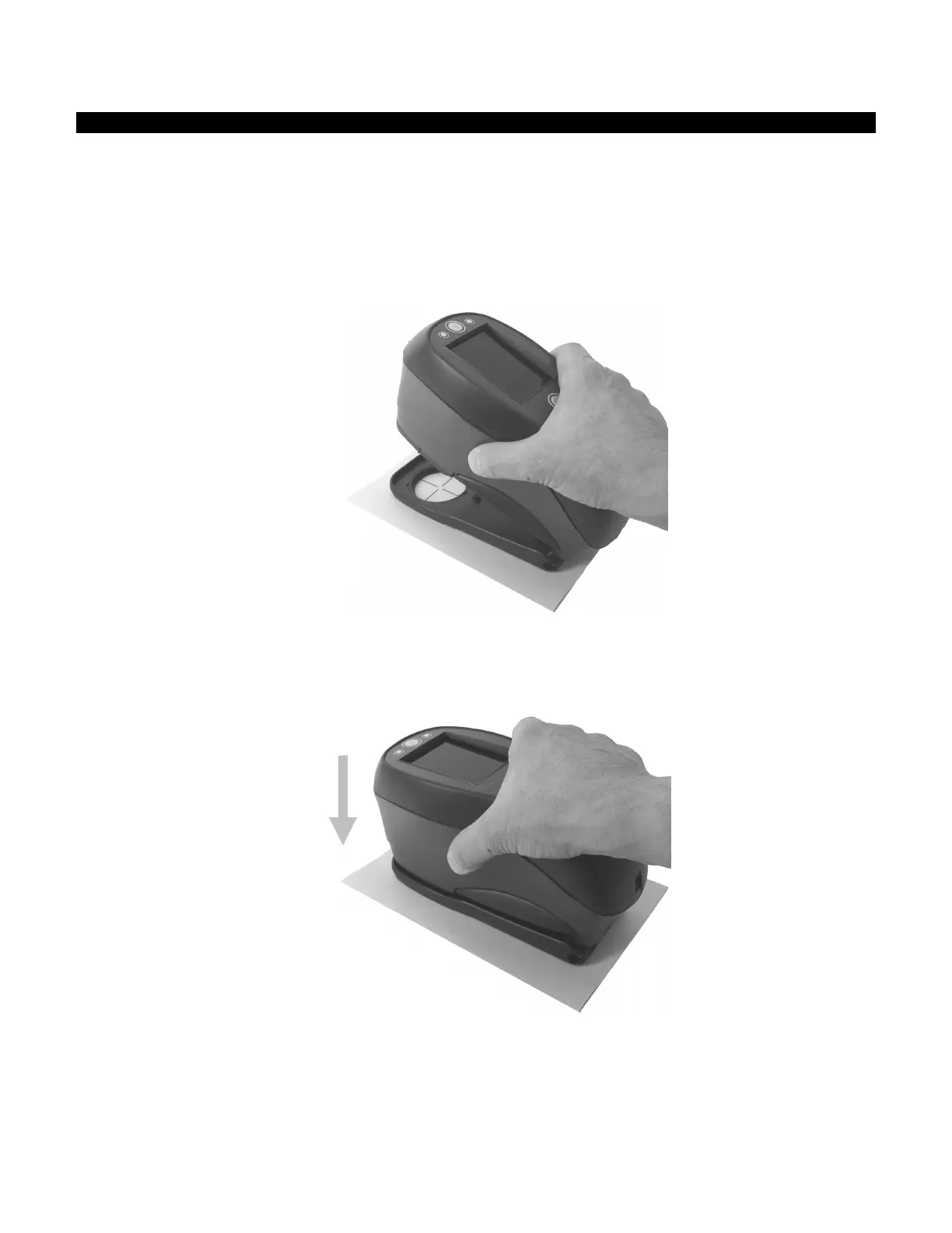 3. Press the instrument firmly to the shoe and hold steady until the display indicates that the