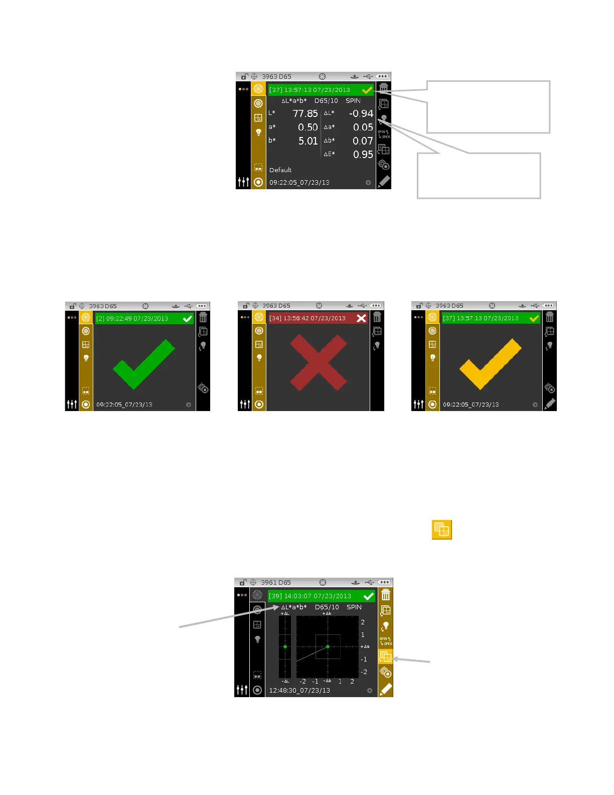 The graph view allows you to display L*a*b* color space coordinates and associated tolerances
