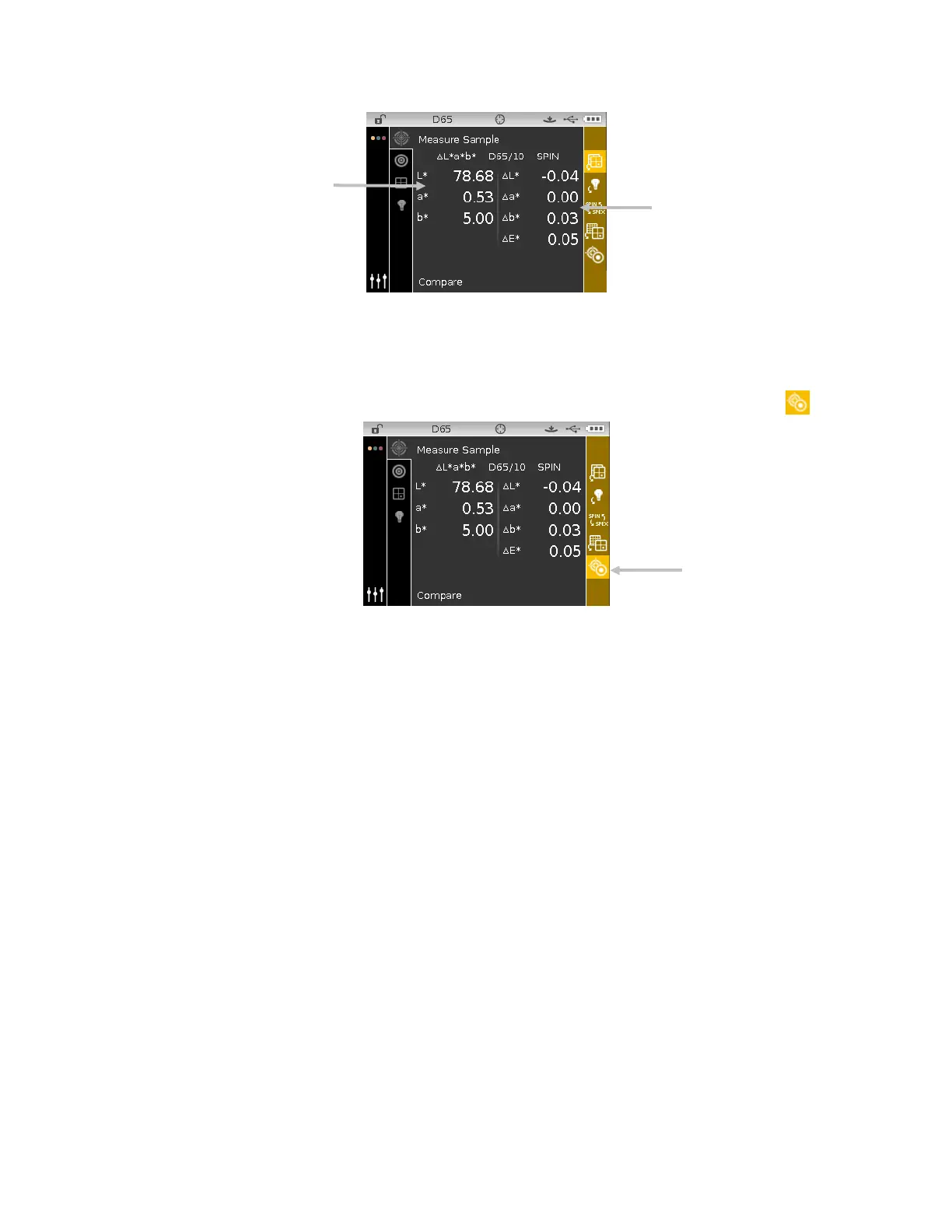 2. Use the Up or Down navigation buttons to select the Standard/Sample toggle icon