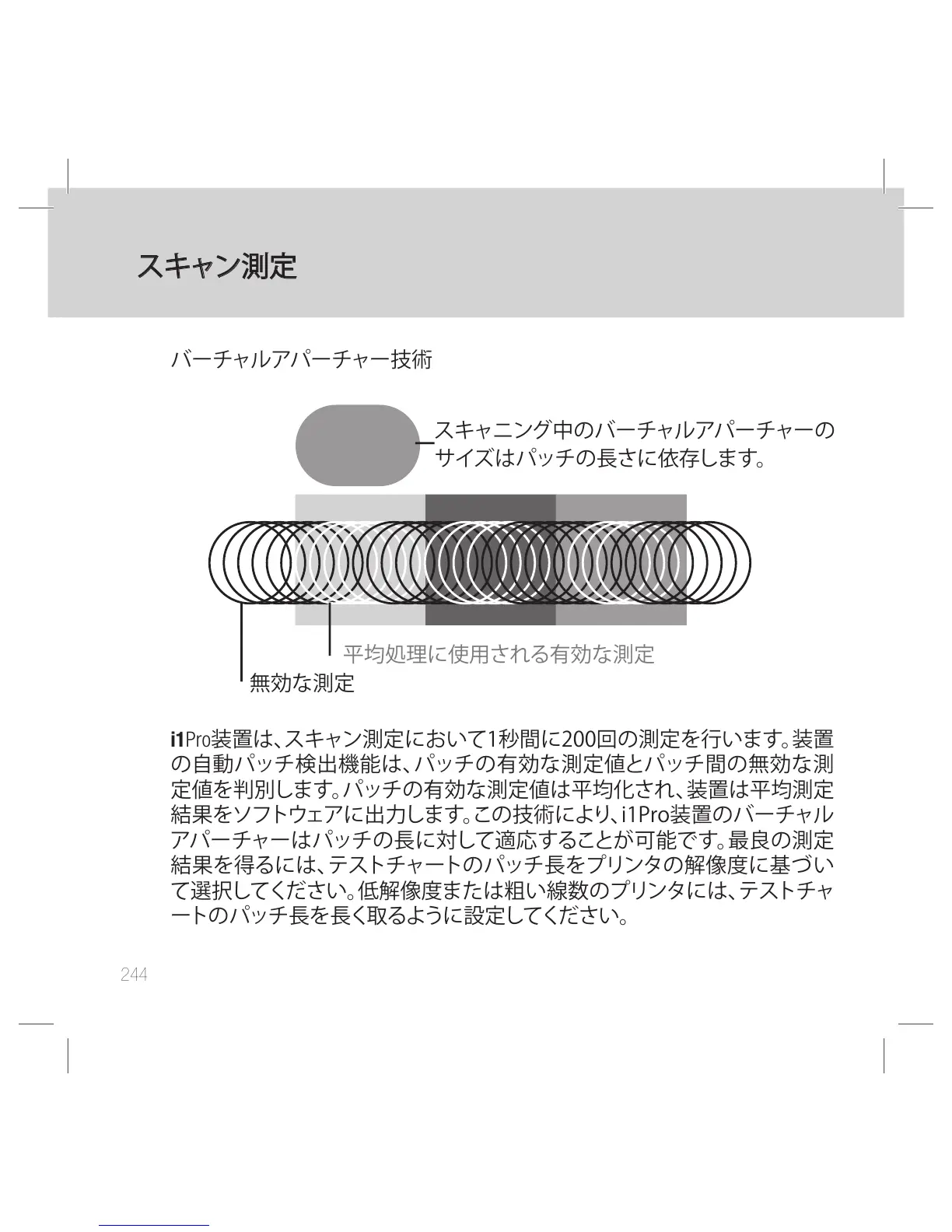 i1Pro装置は、スキャン測定において1秒間に200回の測定を行います。装置