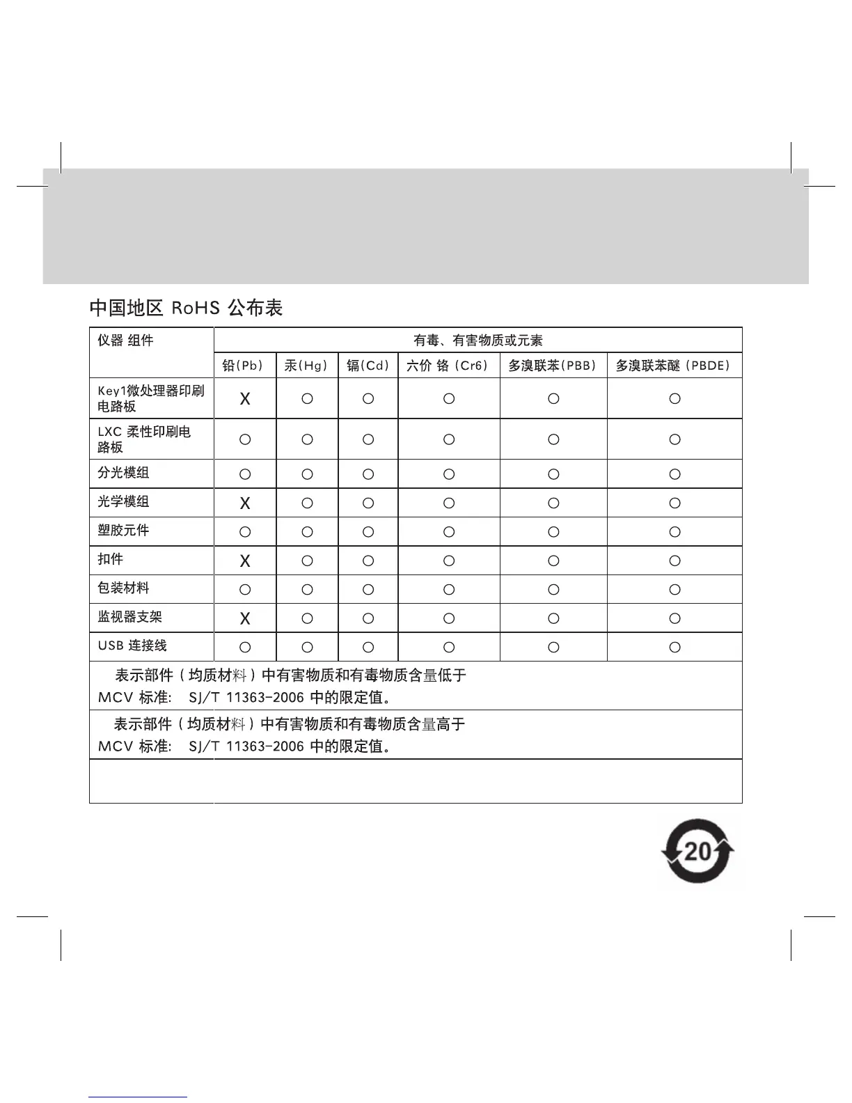 China RoHS Disclosure Table
