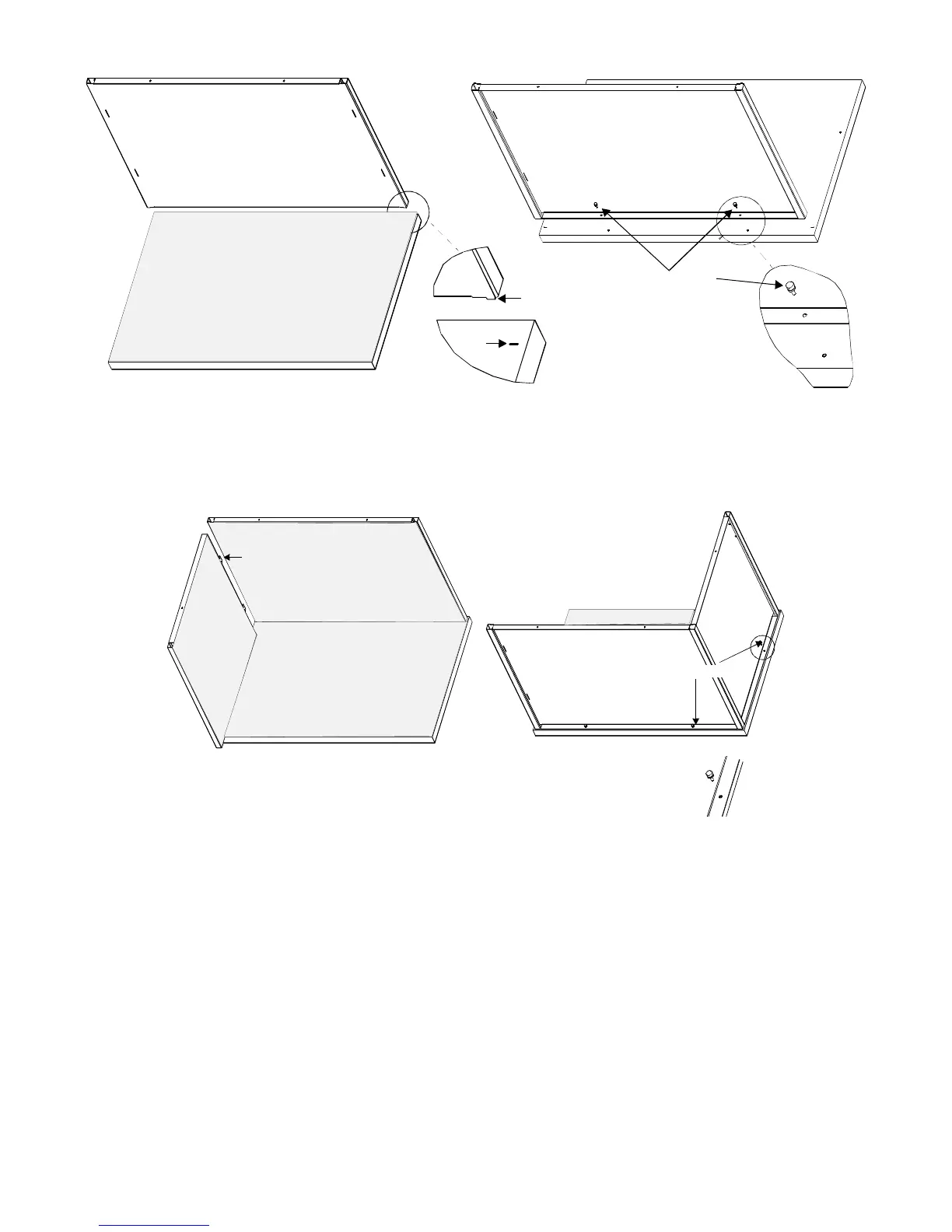 6. Insert the Right Panel (#4) side tabs into the Rear Panel (#2). Fasten the Right Panel to the Bottom Panel by
