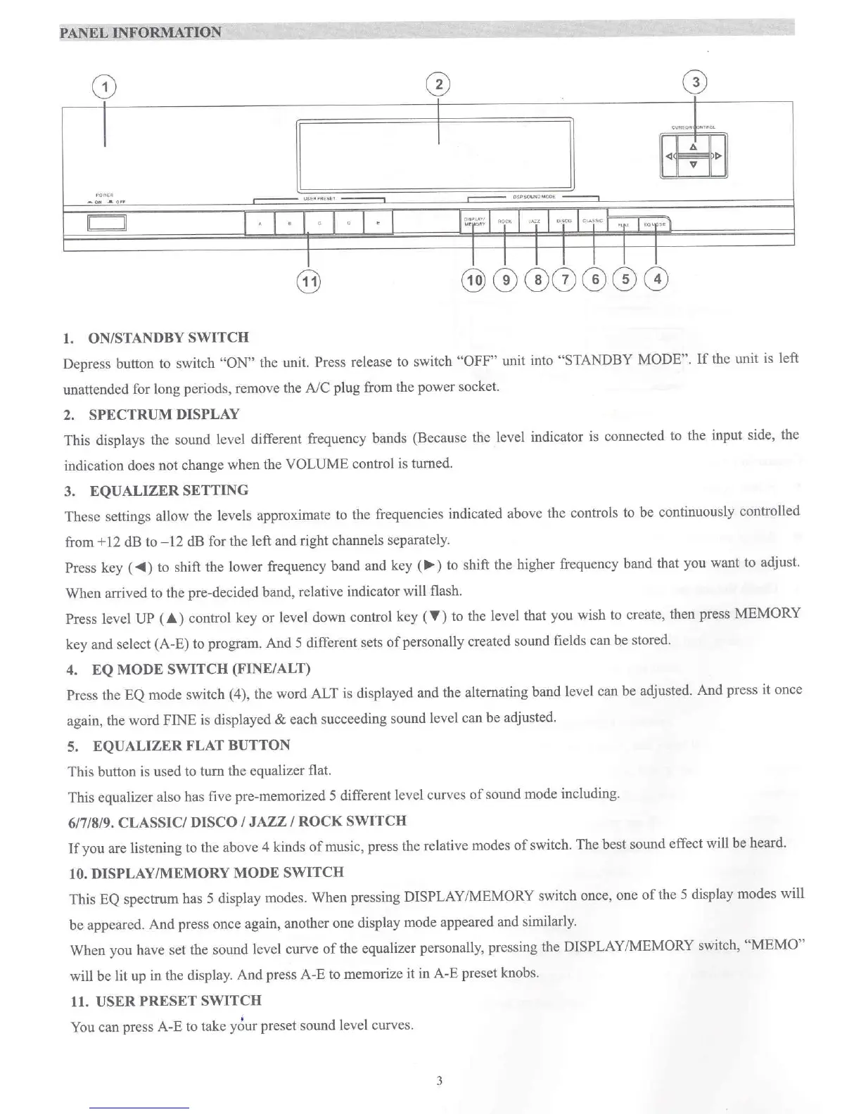 X4-TECH EQ-1000 - Panel Information; On;Standby Switch; Spectrum Display; Equalizer Setting