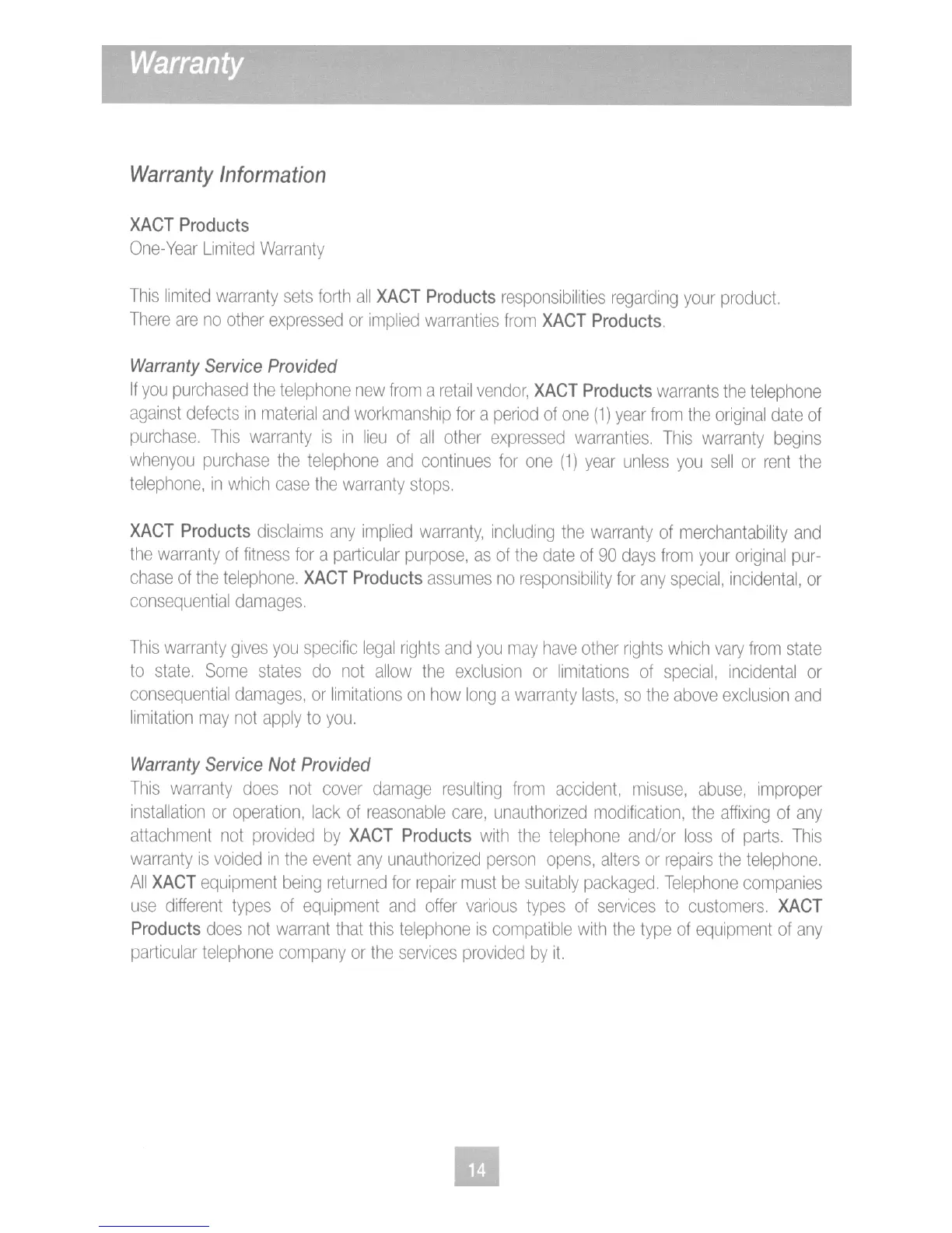 Xact XG2500 - Warranty Information; Warranty Service and Limitations