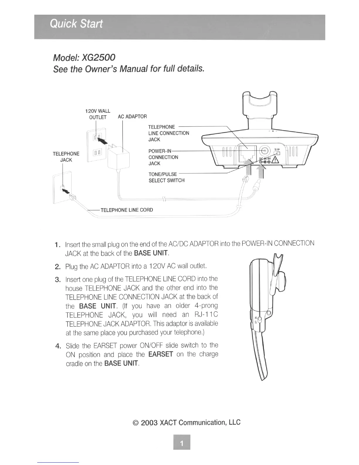 Xact XG2500 - Quick Start Guide; Connecting and Setting Up the Phone