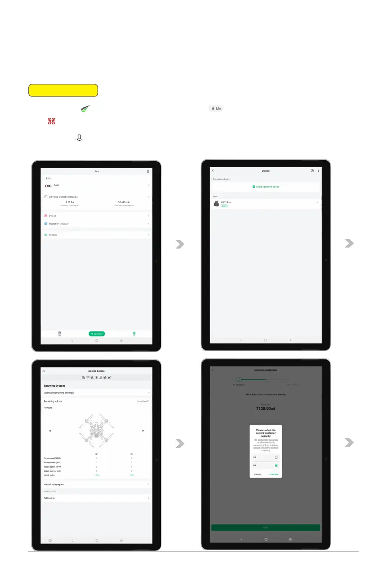 02. Tap the to enter the Spray System interface -> select " Calibration" -> select Liquid Tank