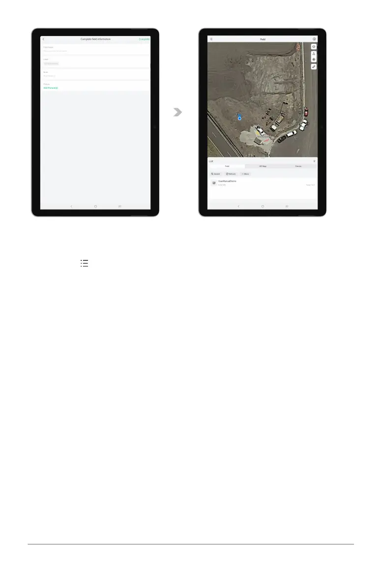 09. Tap on “ ” to review the List of Field / HD Map / Device, the field is now available for Route