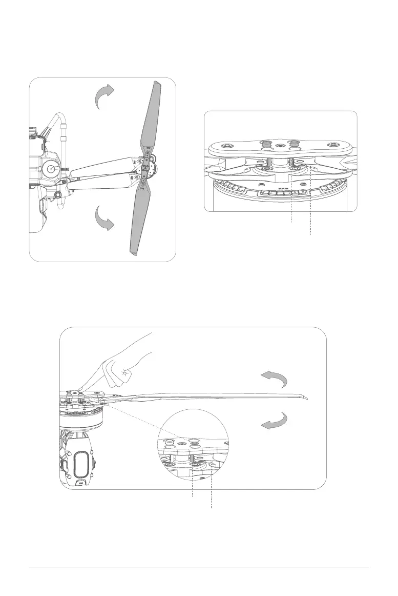 Push down the base to release the Propeller, then rotate and fold the Propellers.