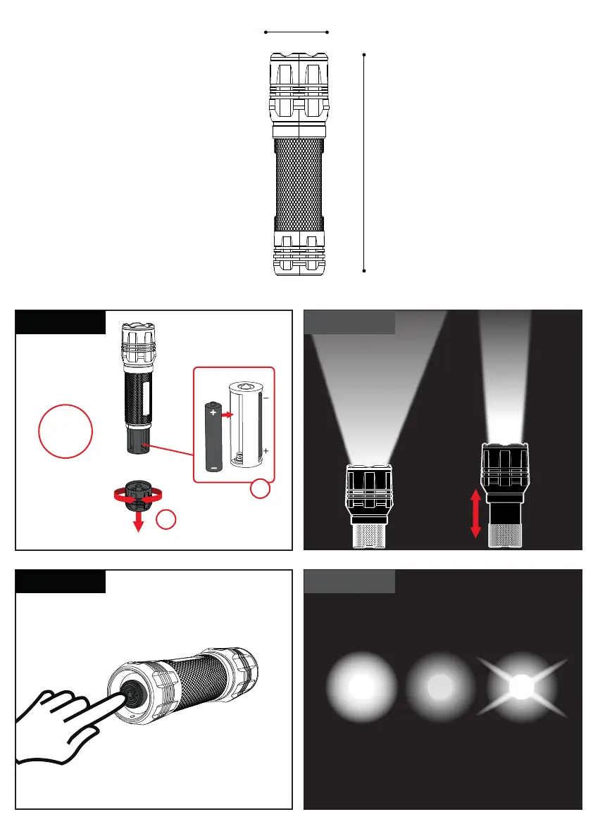XanLite TO600M - Battery Installation; Focus Adjustment; Power Control; Operating Modes