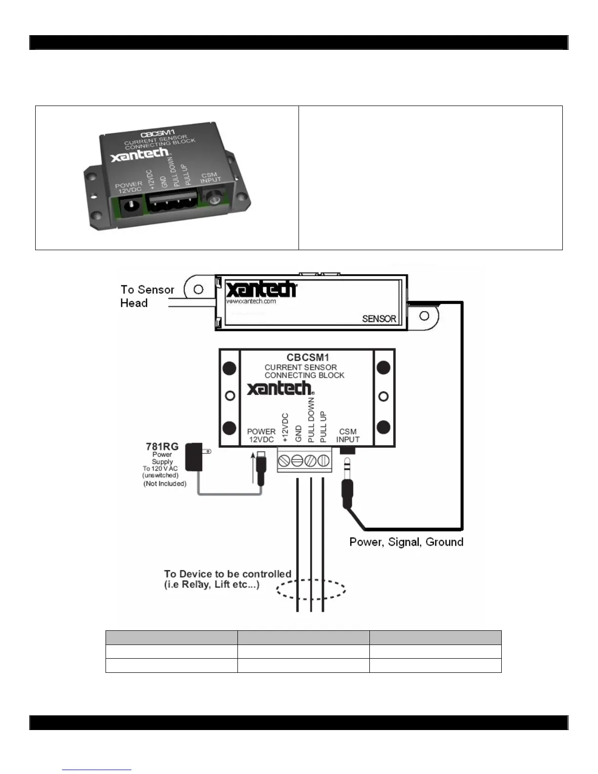 The CBCSM1 allows the Xantech CSM1 Current Sensor