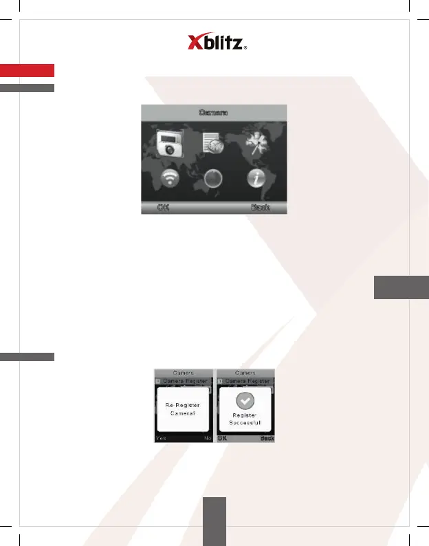 Stisknutím tlačítka MENU vstoupíte do obrazovky registrace kamery, poté