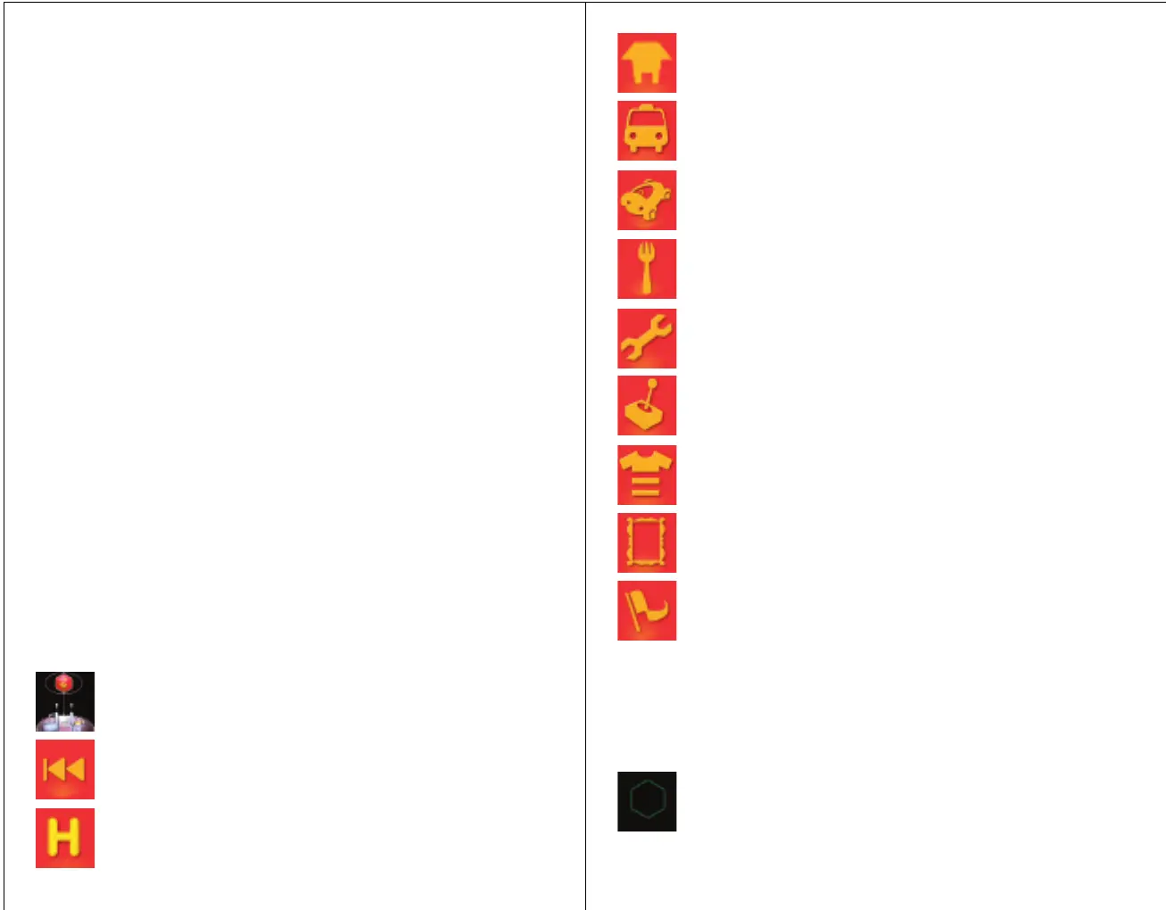 The following icons will help guide your way in and out of the hive: