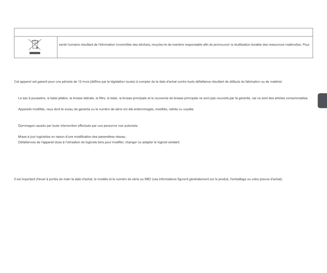 Pour obtenir un service de garantie, il vous est demandé de retourner votre appareil au service client de votre point de vente avec votre preuve d'achat (reçu, facture,…), l'appareil et ses accessoires fournis, dans
