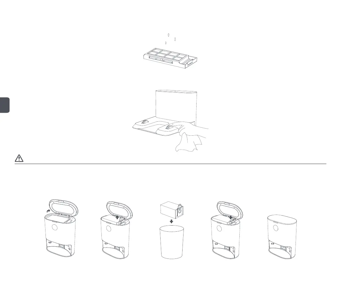 Wenn der Staubbeutel voll ist, leuchtet die Anzeige „Staub voll“ im LED-Display des Staubsammelbehälters; tauschen Sie den Staubbeutel aus. Wir empfehlen, den Staubbeutel alle 4 Wochen auszutauschen.