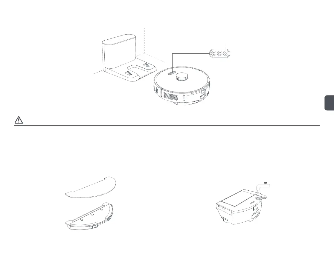 Paso 3: Presione y sostenga el botón Encendido en la unidad principal para encender el robot aspirador y trapeador, luego presione el botón Acoplar para que el robot busque la base de carga y cargue.